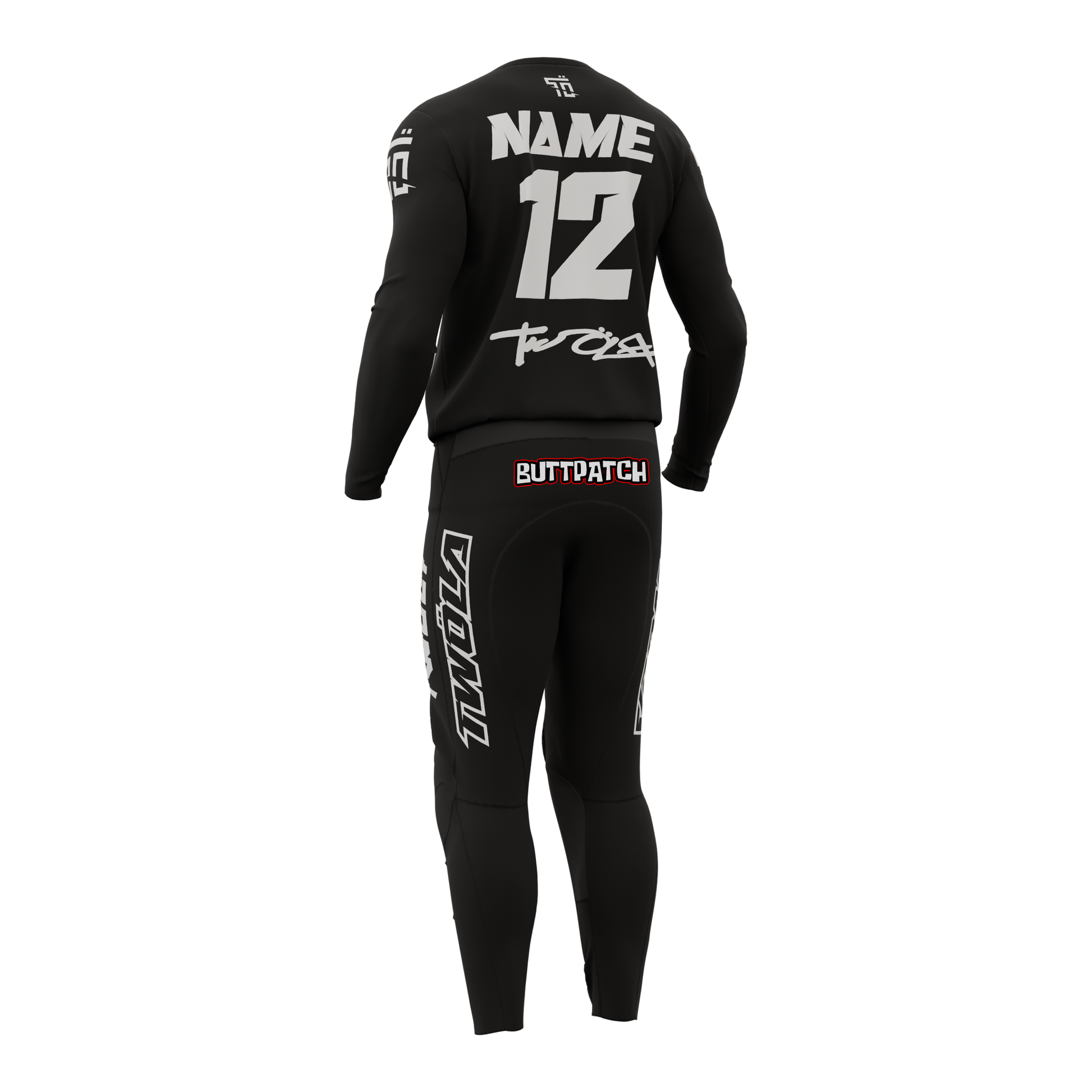 Votre nom, votre numéro et vos logos de sponsors peuvent être ajoutés sur demande. Chaque tenue est créée sur mesure pour refléter votre identité.