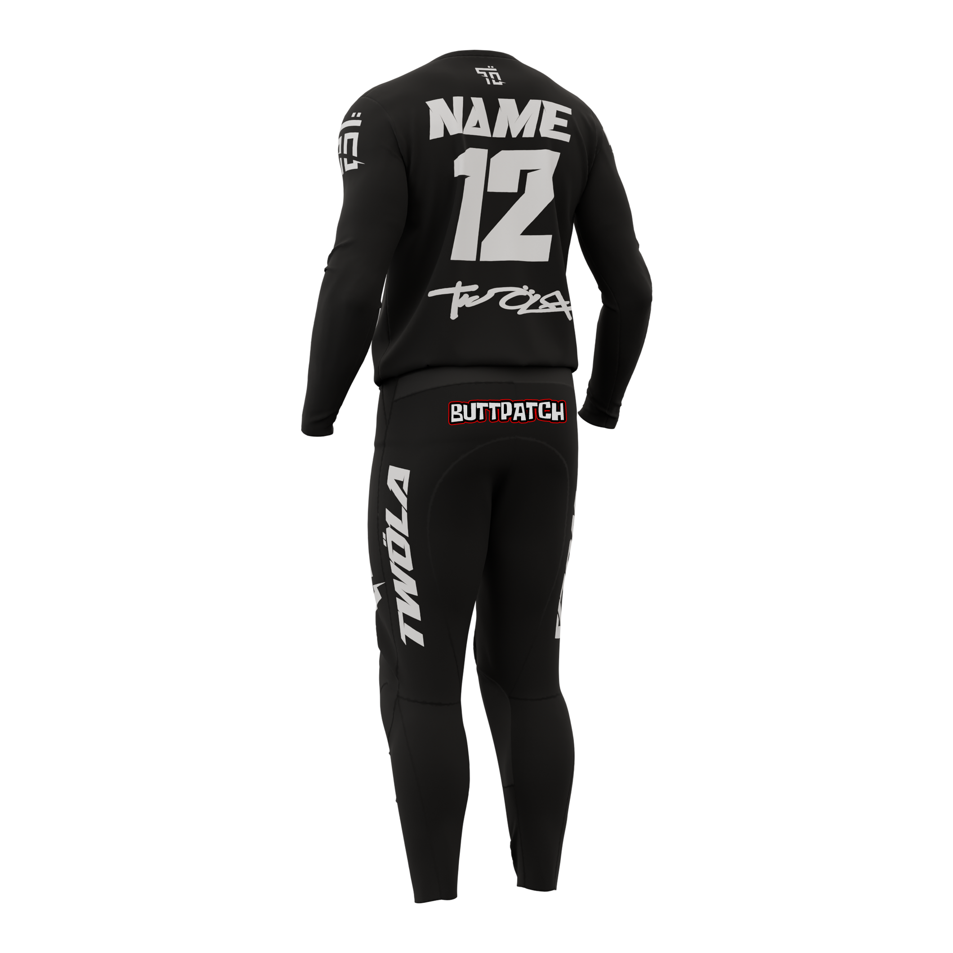 Votre nom, votre numéro et vos logos de sponsors peuvent être ajoutés sur demande. Chaque tenue est créée sur mesure pour refléter votre identité.