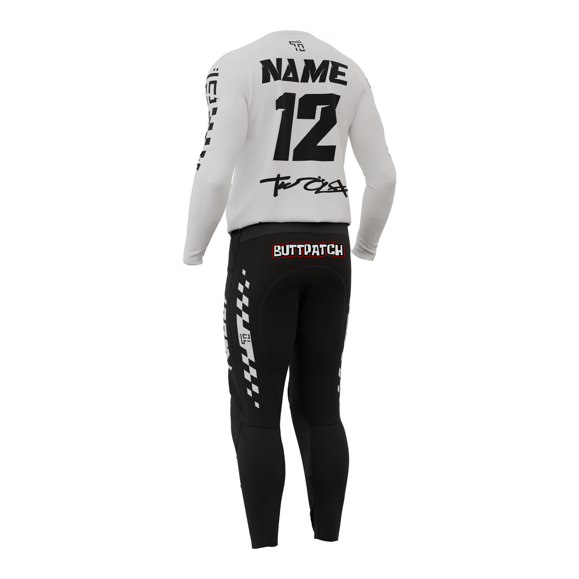 Votre nom, votre numéro et vos logos de sponsors peuvent être ajoutés sur demande. Chaque tenue est créée sur mesure pour refléter votre identité.